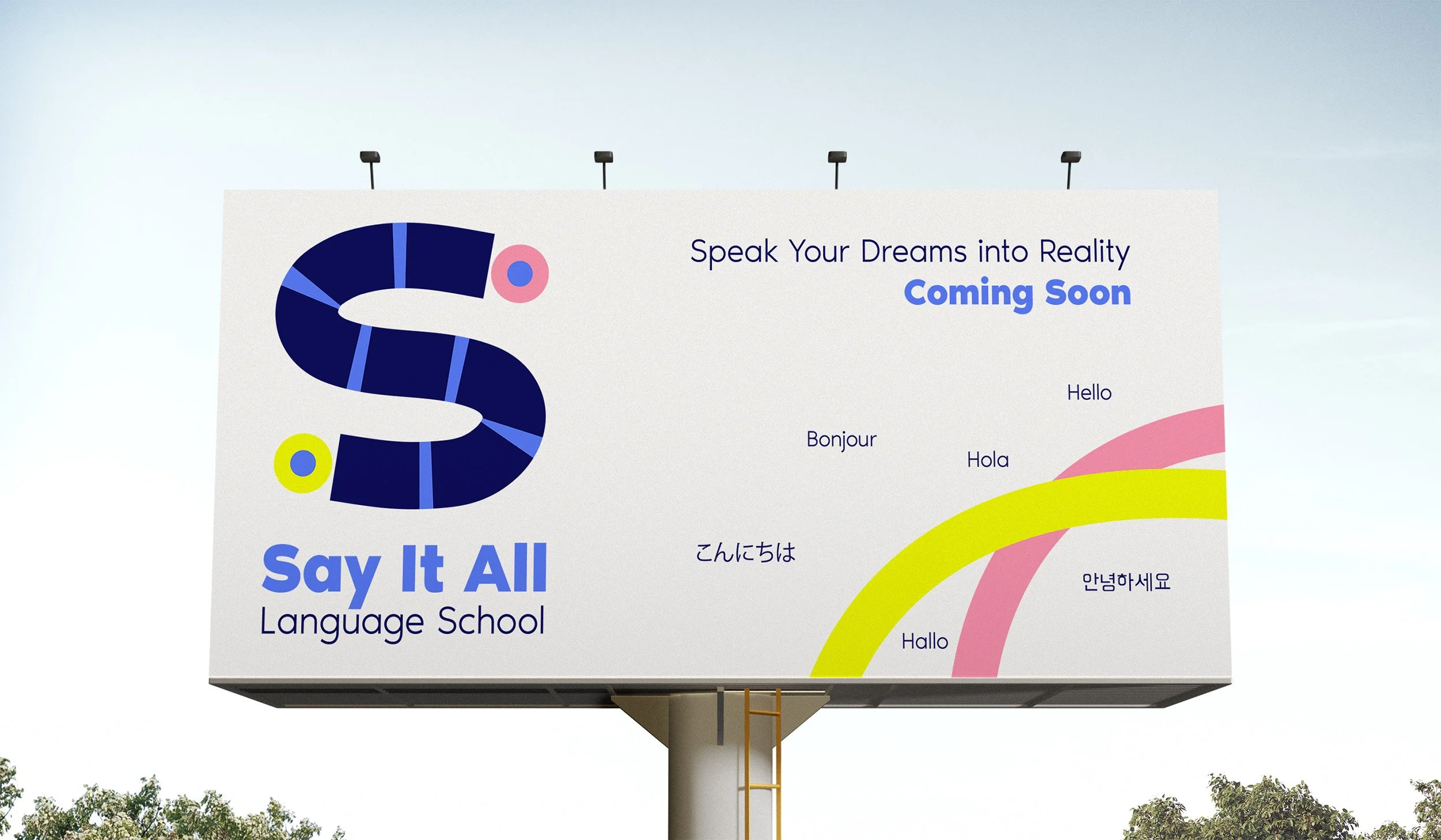 For Say It All School, we developed a vibrant and dynamic brand identity that reflects the institute’s mission of making language learning both fun and effective. The visual system we created features a complementary bold neon green, neon pink, and dark and light blues, capturing the energy and modernity of the school’s approach.